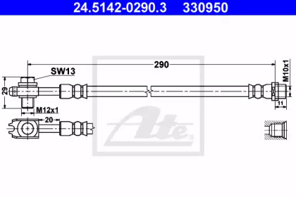 Гальмівний шланг гнучкий передн Лів/Прав (довжина 290мм,діаметр 12,3мм, M10 M11x1/M12x1) VW PASSAT B5, PASSAT B5.5 2.3/2.5D/2.8 10.96-05.05 ATE 24514202903