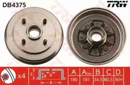 Барабан тормозной TRW DB4375