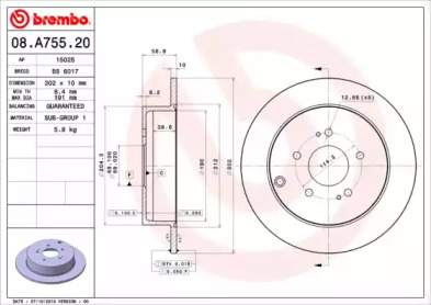 Диск гальмівний BREMBO 08A75520