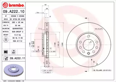 Диск тормозной BREMBO 09A22210