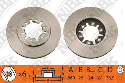 Диск тормозной передний 260мм Nissan Pickup, NP300, Urvan NIBK RN1088