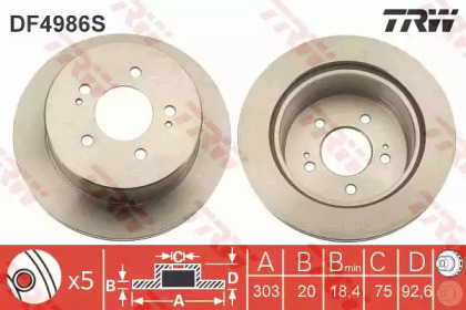 Диск тормозной задн hyundai: h-1 c бортовой платформой/ходовая часть 00-05 , h-1 автобус (kmf) 97-, h-1 фургон 00-, starex (h1) 97- TRW DF4986S