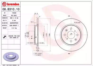 Диск гальмівний задн Лів/Прав HONDA INSIGHT, JAZZ III 1.3H 04.09- BREMBO 08B31010