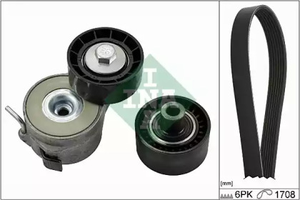 Комплект поліклинового ременя (із натягувачем) CITROEN BERLINGO, BERLINGO MULTISPACE, C5 III, JUMPY II, NEMO, XSARA PICASSO FIAT SCUDO PEUGEOT 206, 206+, INA 529004610