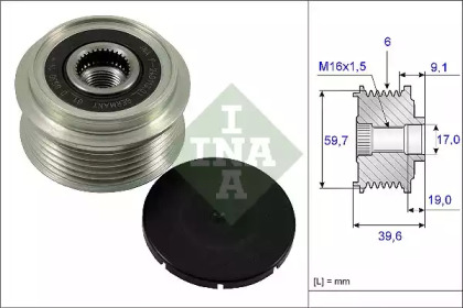 Шків генератора OPEL ASTRA G, ASTRA G CLASSIC, ASTRA H, ASTRA H CLASSIC, ASTRA H GTC, COMBO, COMBO TOUR, CORSA C, CORSA D, MERIVA A, MERIVA B, ZAFIRA B 1.7 INA 535006510