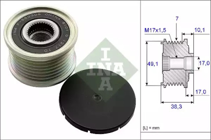 Шків генератора MERCEDES MARCO POLO CAMPER (W447), VITO MIXTO (DOUBLE CABIN), VITO TOURER (W447), VITO (W447) FIAT TALENTO NISSAN INTERSTAR, JUKE, NV300, INA 535015310
