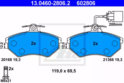Гальмівні колодки, дискове гальмо (набір) ATE 13046028062