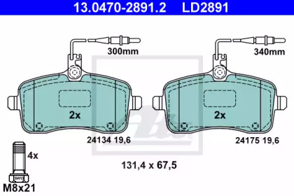Гальмівні колодки, дискове гальмо (набір) ATE 13047028912