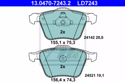 Гальмівні колодки V70 III (135), 04.07 ATE 13047072432