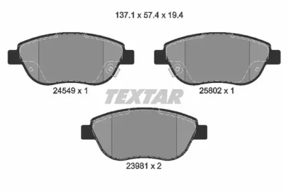 Гальмівні колодки, дискове гальмо (набір) TEXTAR 2454901