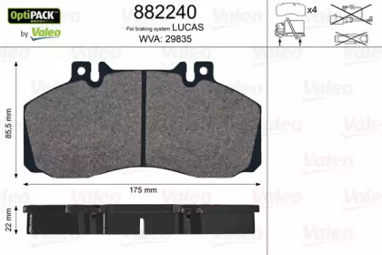 Колодки дискового тормоза VALEO 882240