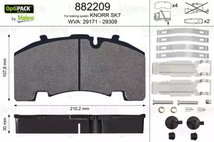 Колодки гальмівні 210,2x107,8x30 VALEO 882209