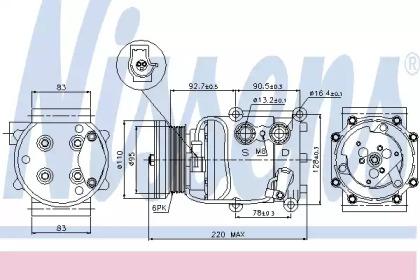 NISSENS 890769 Компресор кондиціонера 6SEU16C, діаметр шківа 110мм, 12В MERCEDES GLE (W166), M (W166) 3.0D 06.11-10.18