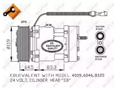Air-conditioning compressor fits: DAF CF, CF 65, LF, LF 45, LF 55 01.01- NRF 32750