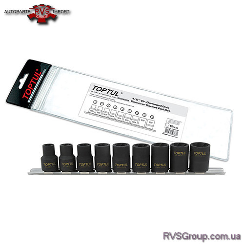 Набор головок для поврежденных гаек на планке TOPTUL 1/2" 9 ед. GAAG0903 TOPTUL GAAG0903