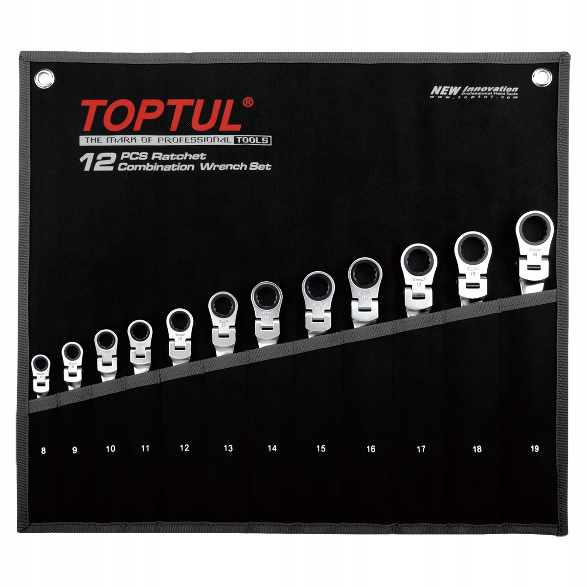 Набор ключей с трещоткой и шарниром комбинированных TOPTUL 12 ед. 8-19мм в чехле GPAQ1204 TOPTUL GPAQ1204