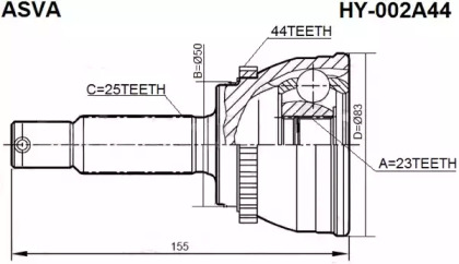 ШРУС НАРУЖНЫЙ 23x50x25 (HYUNDAI MATRIX/LAVITA 2001-) ASVA HY002A44