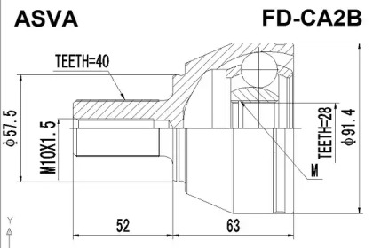 ШРУС НАРУЖНЫЙ 28X57.5X40 (FORD MONDEO CA2 2007-) ASVA FDCA2B