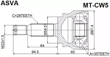 ШРУС НАРУЖНЫЙ 35x59,5x28 (MITSUBISHI OUTLANDER CW 2006-) ASVA MTCW5