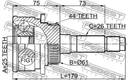 Купити Шрус зовнішній 25X61X26 (MAZDA BT-50 2006-) FEBEST FEBEST (арт. 0510B25A44) з доставкою по Україні