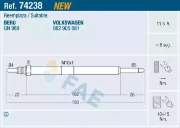 Свічка розжарювання FAE 74238
