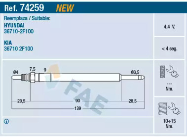 Свеча накаливания FAE 74259