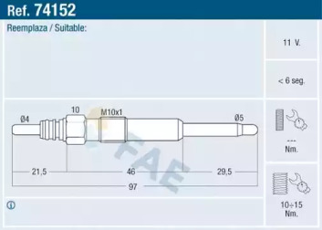 Свічка розжарювання FAE 74152