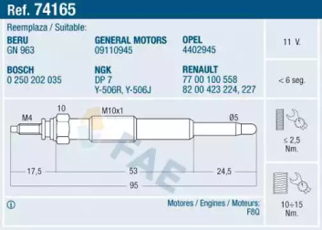 Свіча розжарювання FAE 74165