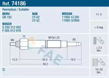 Свічка розжарювання FAE 74186