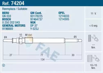 Свеча накаливания FAE 74204