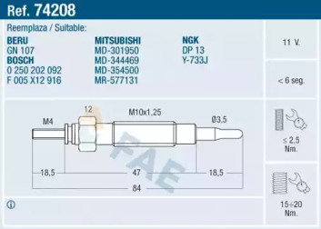 Свічка розжарювання FAE 74208