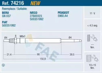 Свіча розжарювання FAE 74216