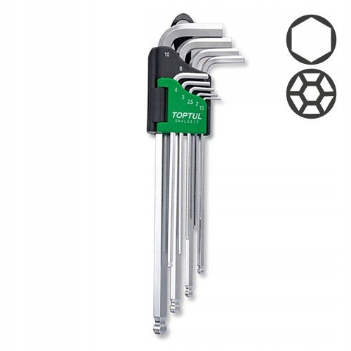Набор ключей шестигранных с шаром TOPTUL 1,5-10мм 9 ед. супердлинных GAAL0917 TOPTUL GAAL0917