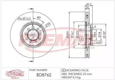 Тормозной диск FREMAX BD8762