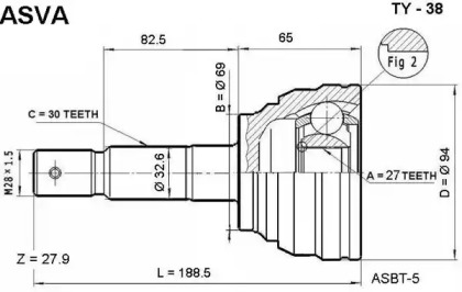 TY-38 ШРУС НАРУЖНЫЙ 27X69X30 (TOYOTA LAND CRUISER PRADO 90 1996-2002) ASVA ASVA TY38